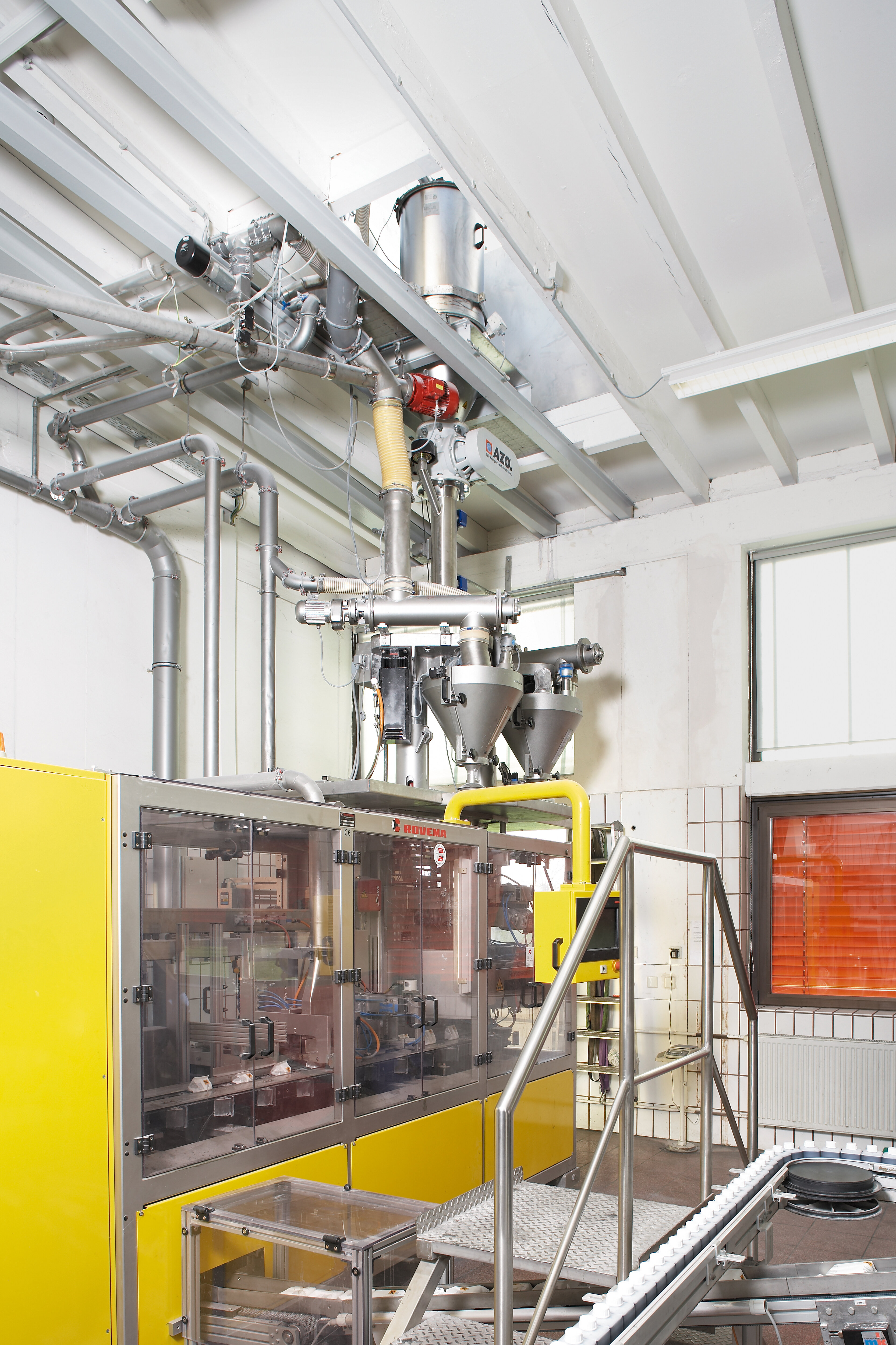 Die erforderlichen Genauigkeiten werden durch frequenzgeregelte Dosierschnecken und den jeweiligen Rohstoffen zugeordneten Nachlaufzeiten der Saugförderung erreicht.