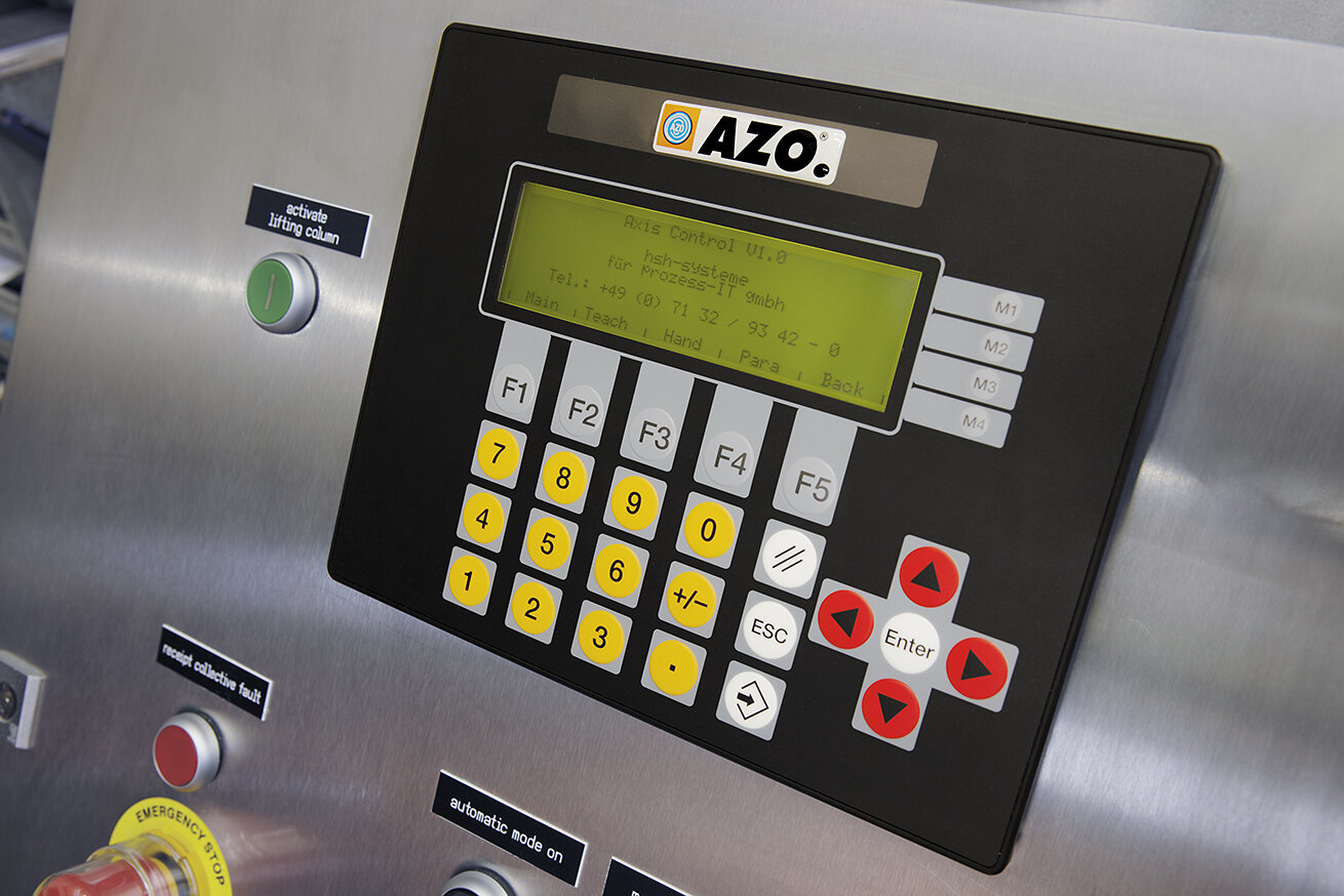 The AZO Lifting column is anchored as a free-standing unit to the floor or mounted with additional installation fixtures to the ceiling or wall. The lifting function is performed by an electrical drive unit while the chain gear mechanism moves the drive chain. The drive system moves the carriage with the attached load platform vertically up and down. An optional overload safety device shuts down the drive in the case of excessive load. The mechanical brake on the drive unit prevents the load platform from dropping uncontrollably. Positioning is controlled either by means of limit switches or a position controller which allows individual movements or movement sequences.
